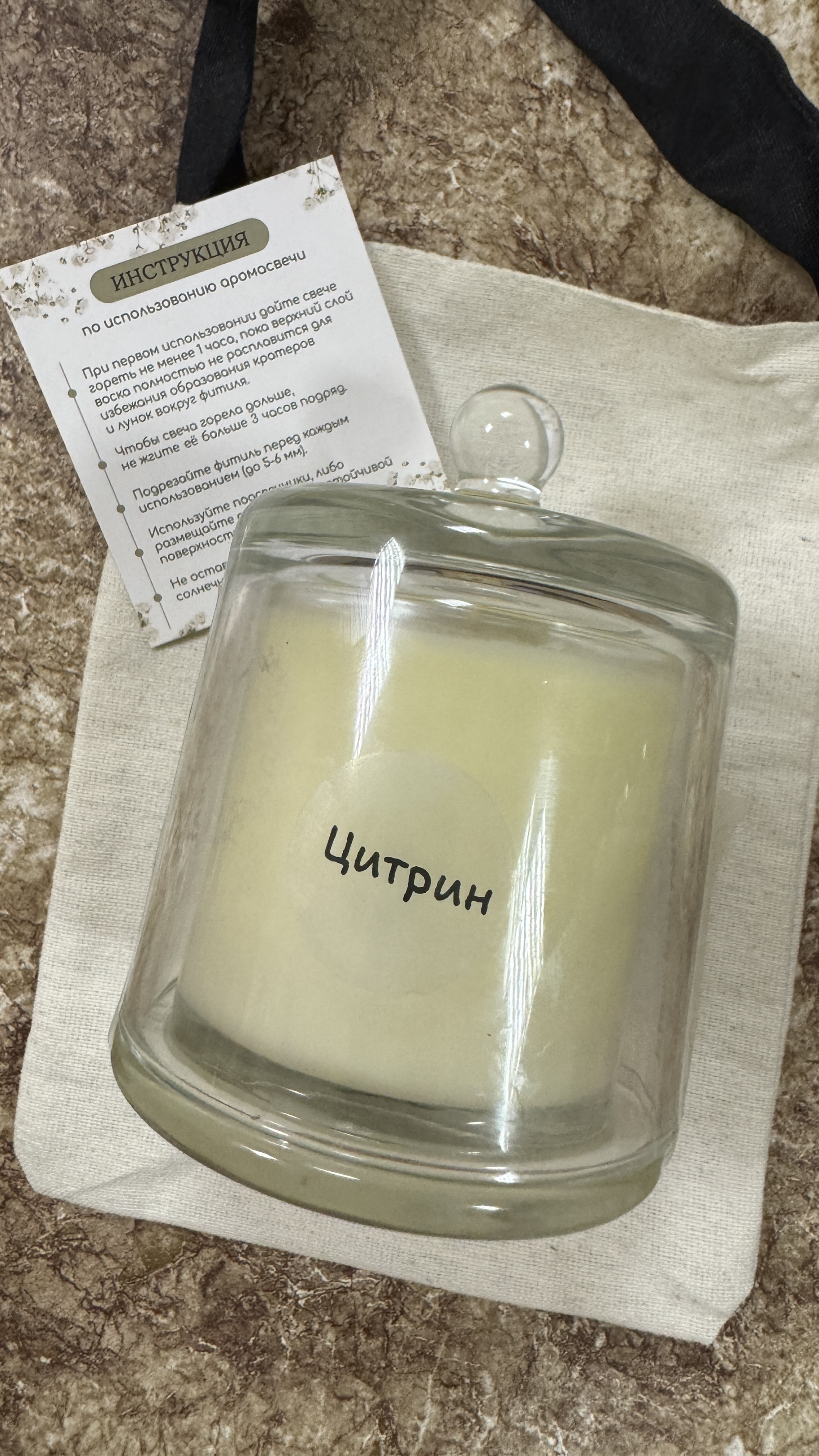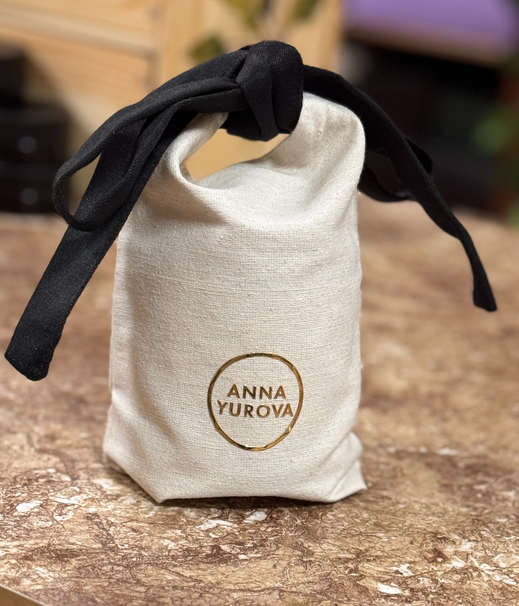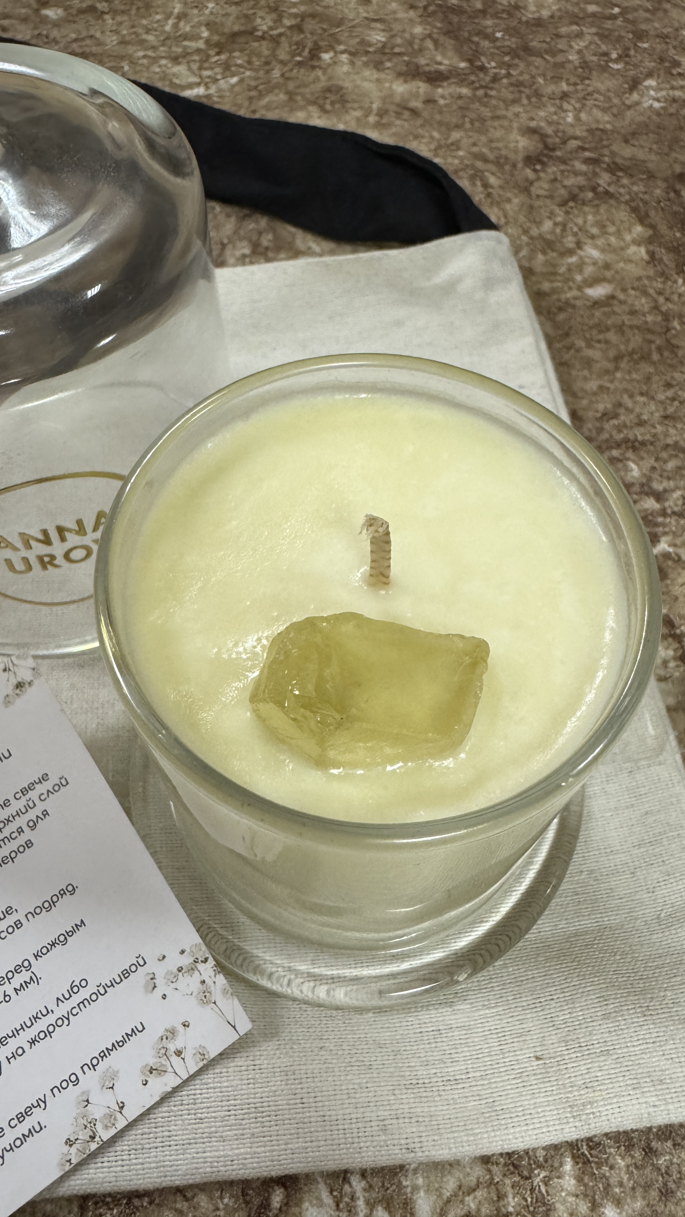 Упаковка: элегантный стеклянный подсвечник с золотым логотипом ANNA YUROVA.