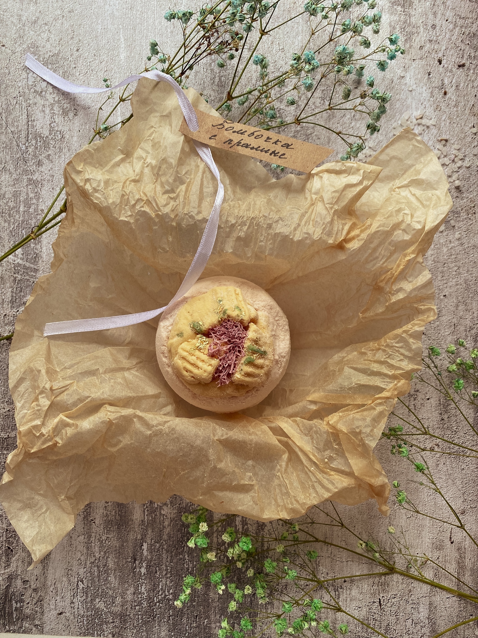 Бомба с маслами миндаля, ши и кокоса, а так же с морской солью и цветочными бутонами заменит поход в спа!