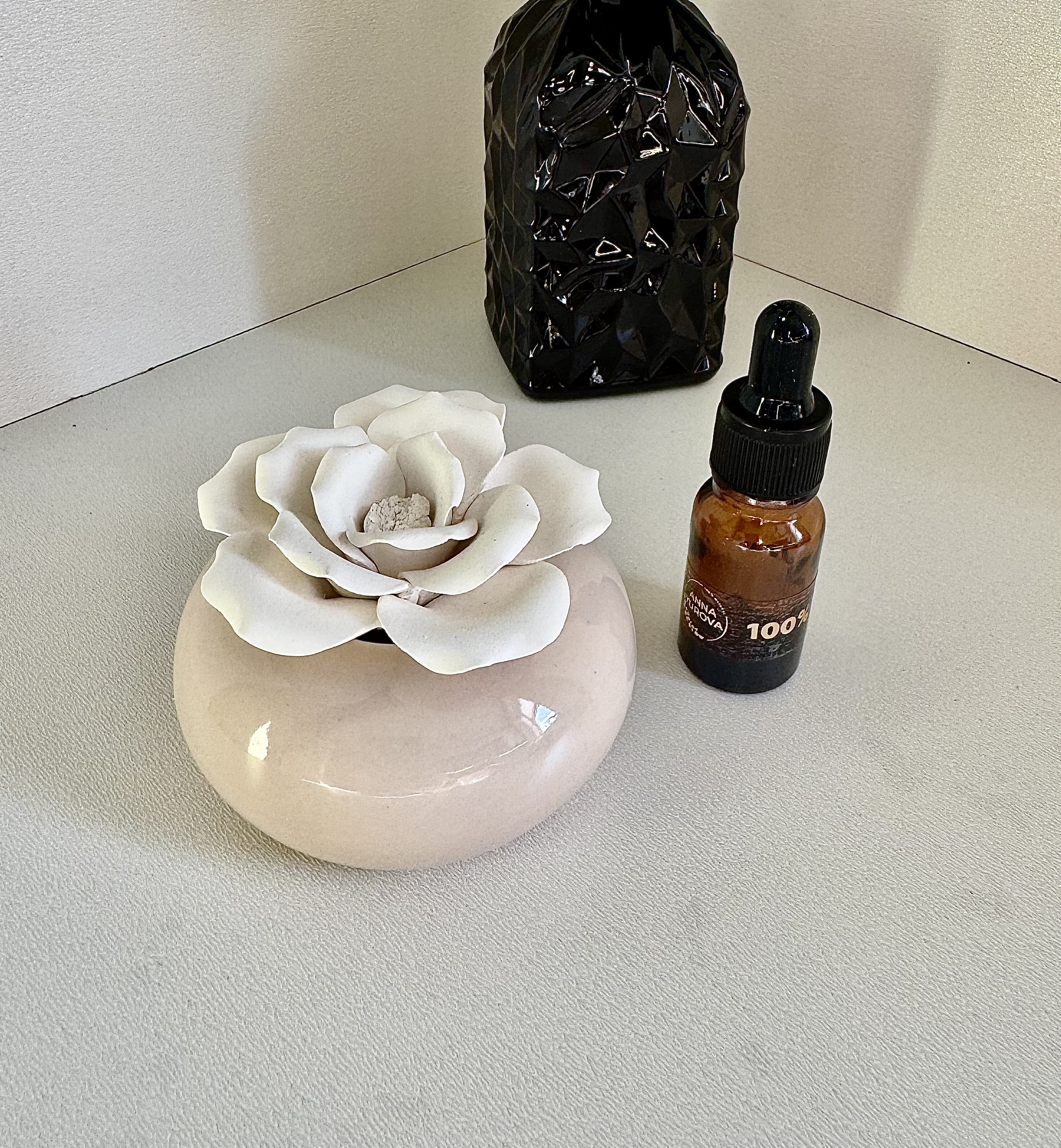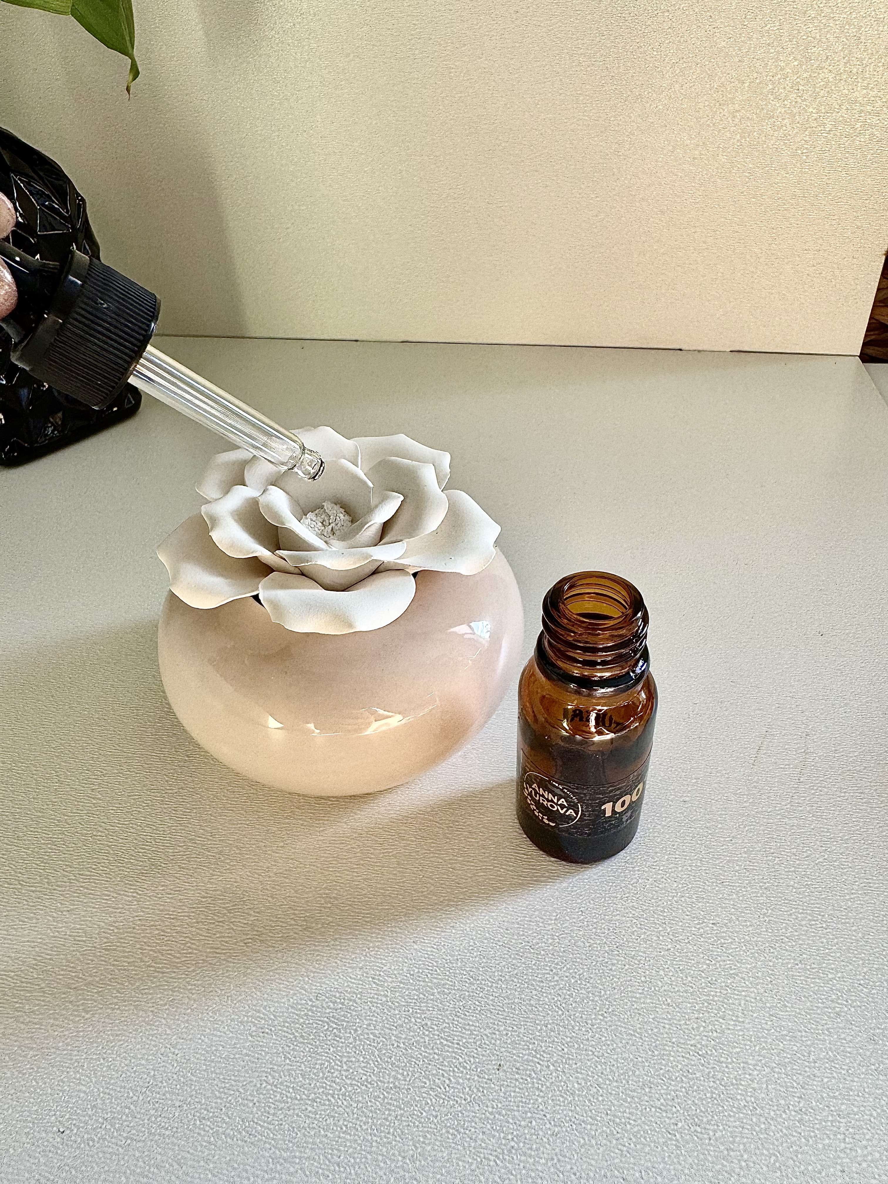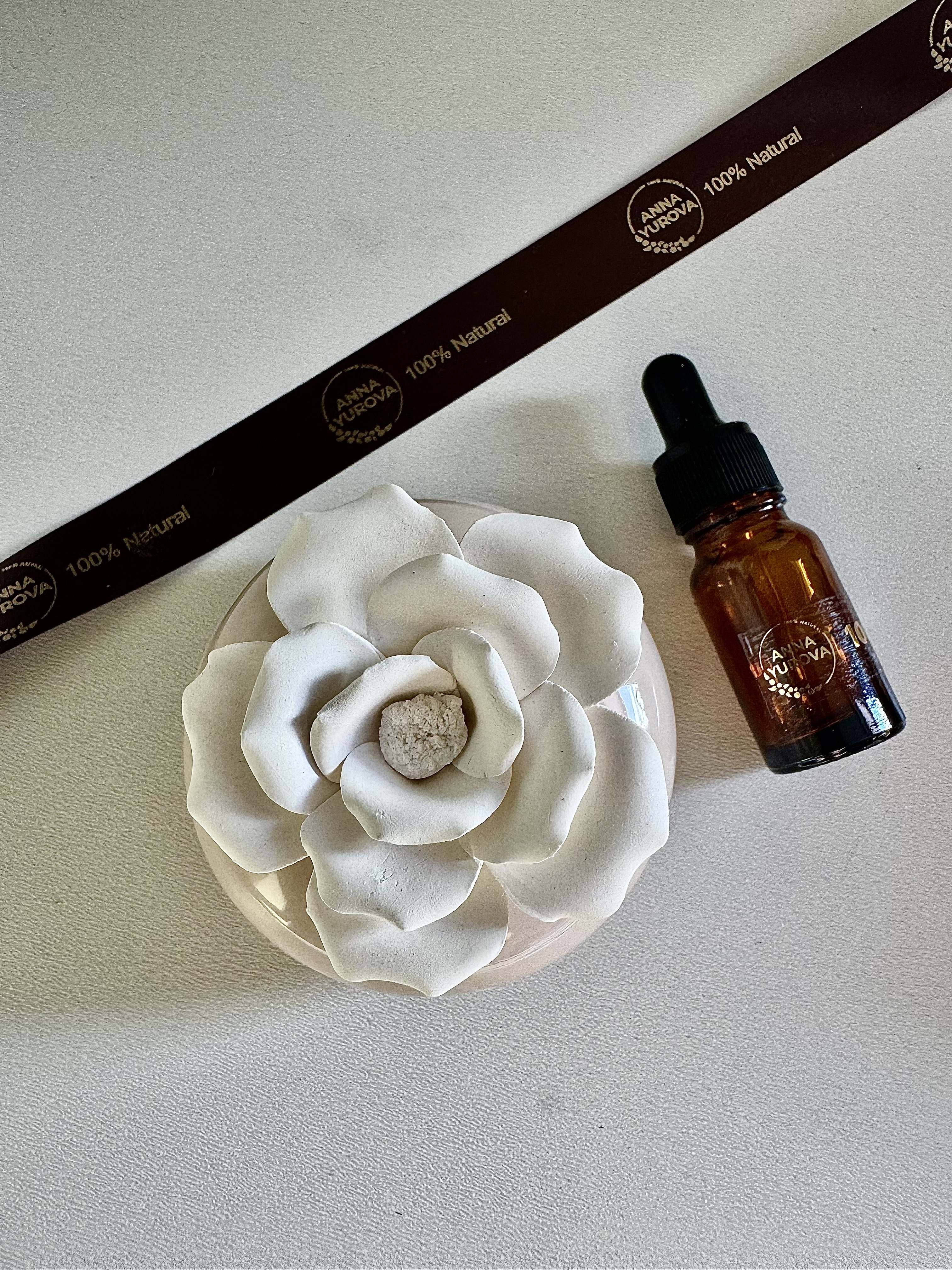1. Налить ароматическое масла в керамическую чашу и вставить гипсовый цветок.